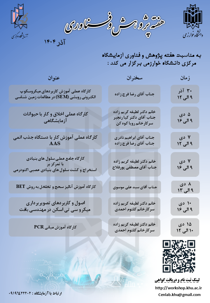 ۱۴۰۴/۱۰/۰۵ ساعت ۰۹:۰۰ | https://workshop.khu.ac.ir | |