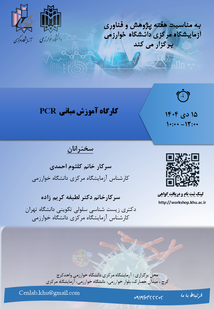 | کارگاه آموزش مبانی PCR | خانم دکتر لطیفه کریم زاده سرکارخانم کلثوم احمدی |