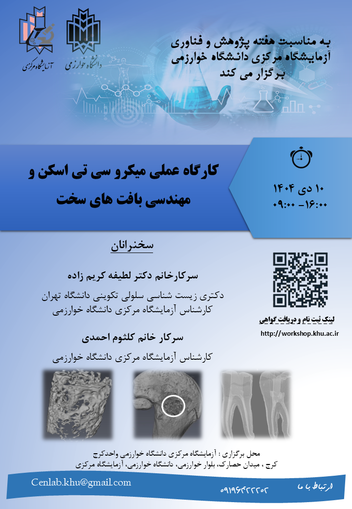 این نشست تخصصی به مناسبت هفته پژوهش و فناوری توسط آزمایشگاه مرکزی دانشگاه خوارزمی برگزار میشود و بر مفاهیم علمی و کاربردی تصویربرداری Micro-CT در حوزه مهندسی بافت سخت تمرکز دارد. شرکتکنندگان با اصول تصویربرداری حجمبالا، تحلیل دادهها و نمونههای کاربردی آشنا میشوند.